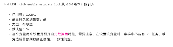 6.3.0DMR版本不建议生产使用, 6.3中开始引进了 tidb_enable_metadata_lock 变量,这个会导致dml阻塞ddl , 而且刚引入不是很成熟,设置为false看看。如果是重启解决的话 需要所有tidb server都关闭后再重启。 建议升级下版本吧