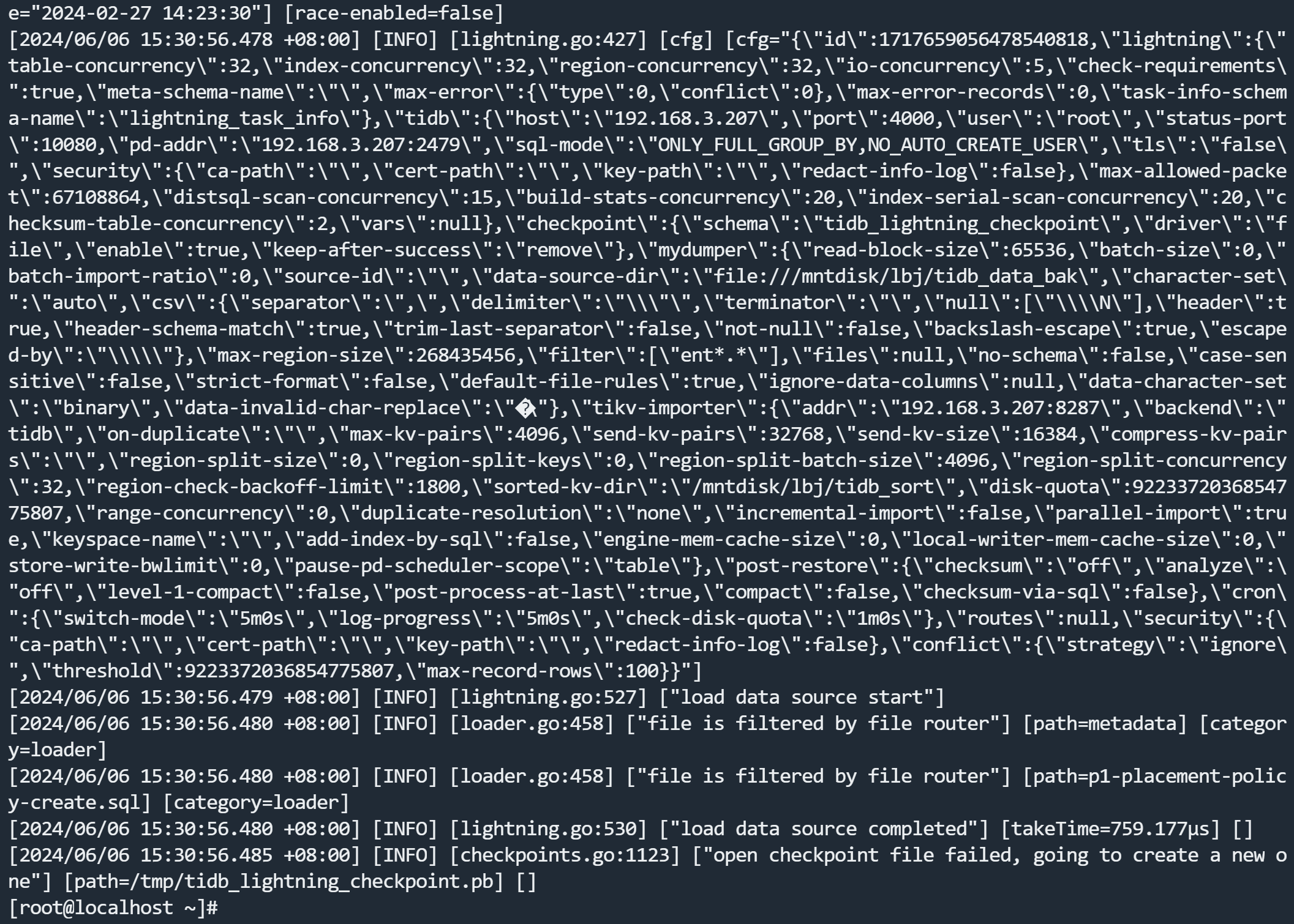 tiup tidb-lightning -config tidb-lightning.toml