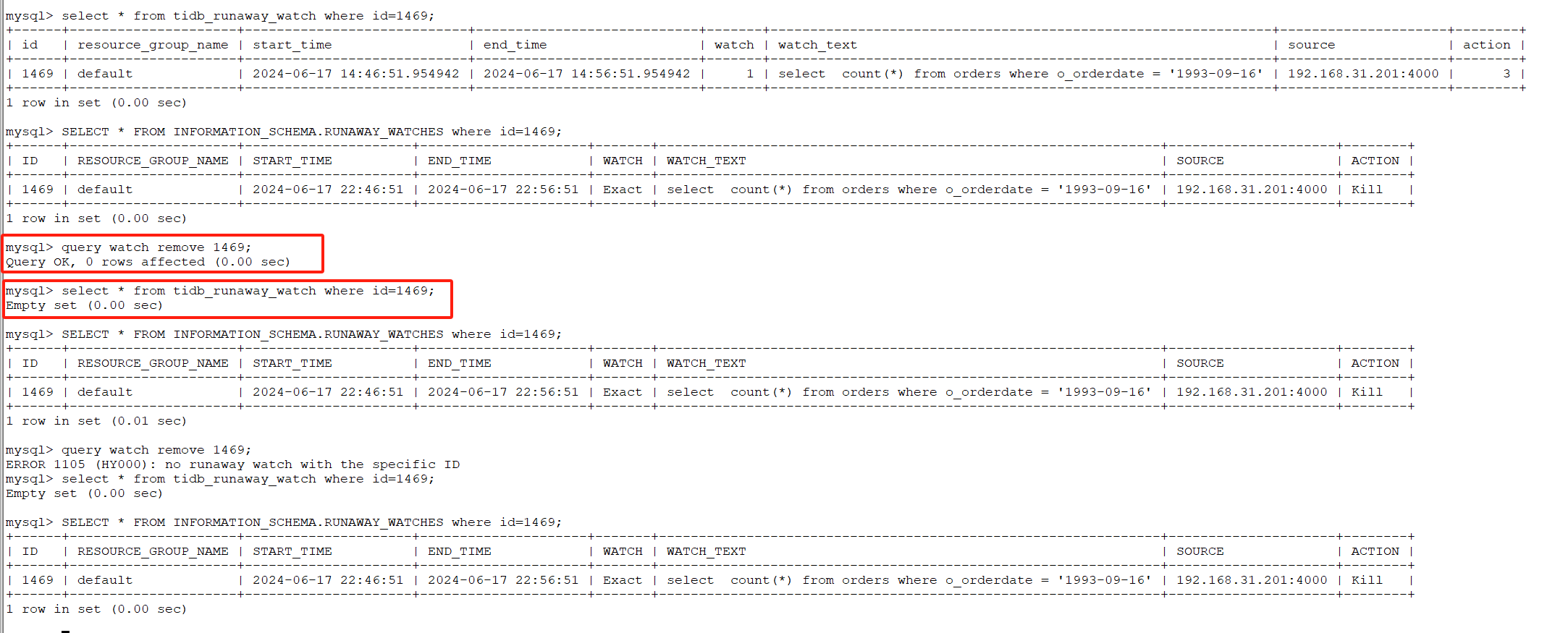 SELECT * FROM INFORMATION_SCHEMA.RUNAWAY_WATCHES ORDER BY id;
