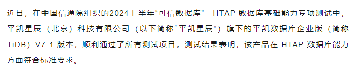 TIDB完成信创测试了,至于结果公布,可能要年底了