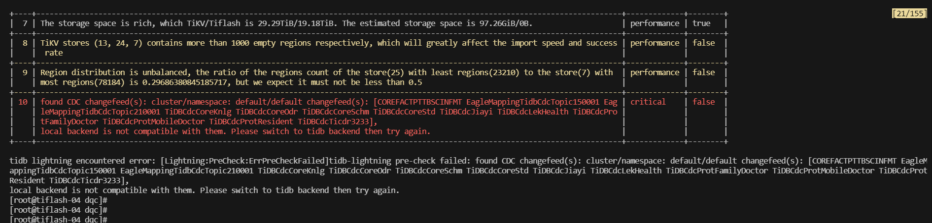 使用 dumpling 逻辑导出,在另一个集群使用lightning导入的过程中,配置为物理导入时,遇到下图中的问题