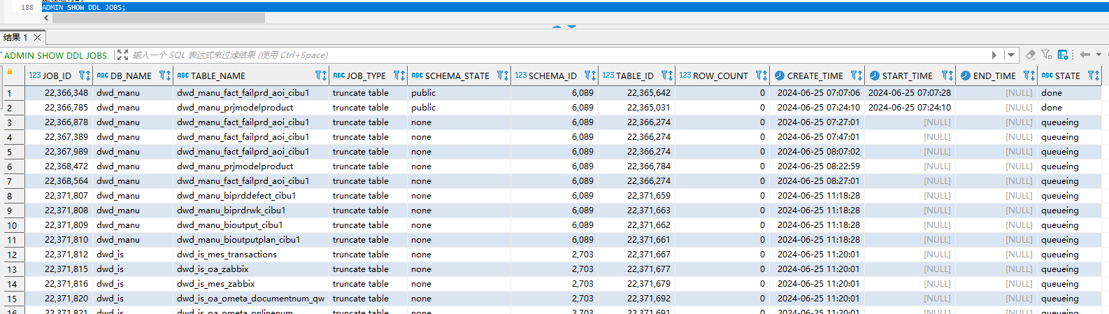 【遇到的问题:问题现象及影响】表truncate语句卡住,后续任务挤压