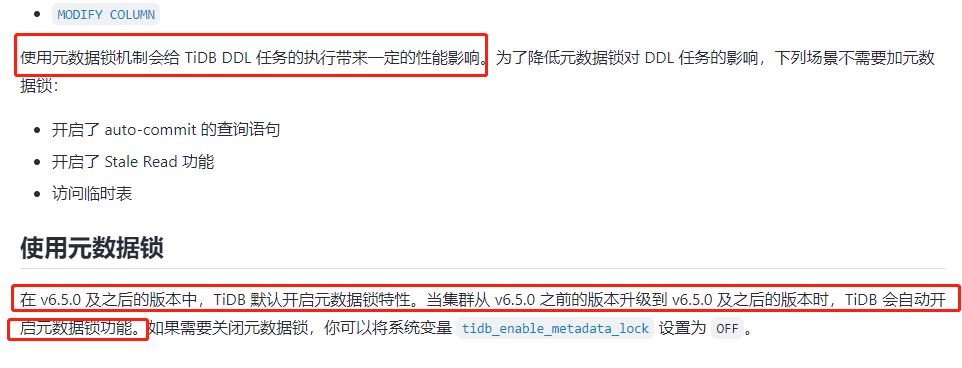 嗯 感谢 已经释放阻塞任务,重新分配TiDBServer 节点,并检查schema 信息没有问题,看看明天是否还会阻塞。在阻塞尝试关闭 元数据锁看看