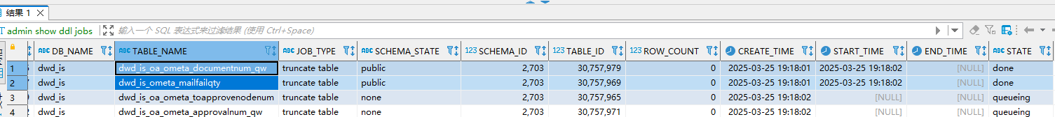 off tidb_ddl_enable_fast_reorg 查了下跟创建索引参数相关,查看阻塞前后,没有进行索引创建