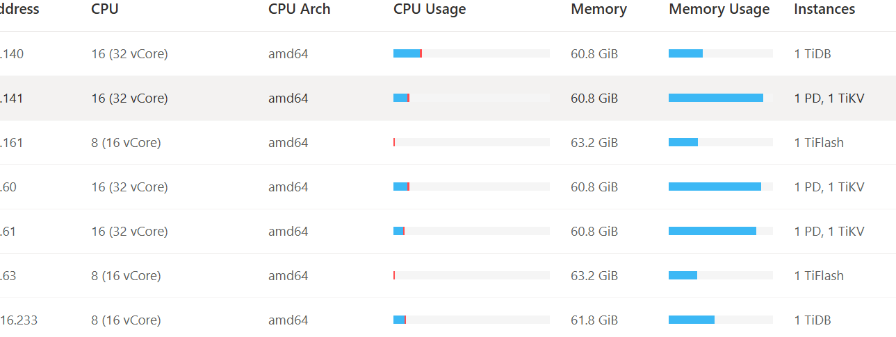 【资源配置】进入到 TiDB Dashboard -集群信息 (Cluster Info) -主机(Hosts) 截图此页面
