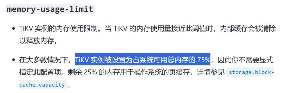 tikv内存用太多了,用命令把占用内存上线调小点,可以立即生效。