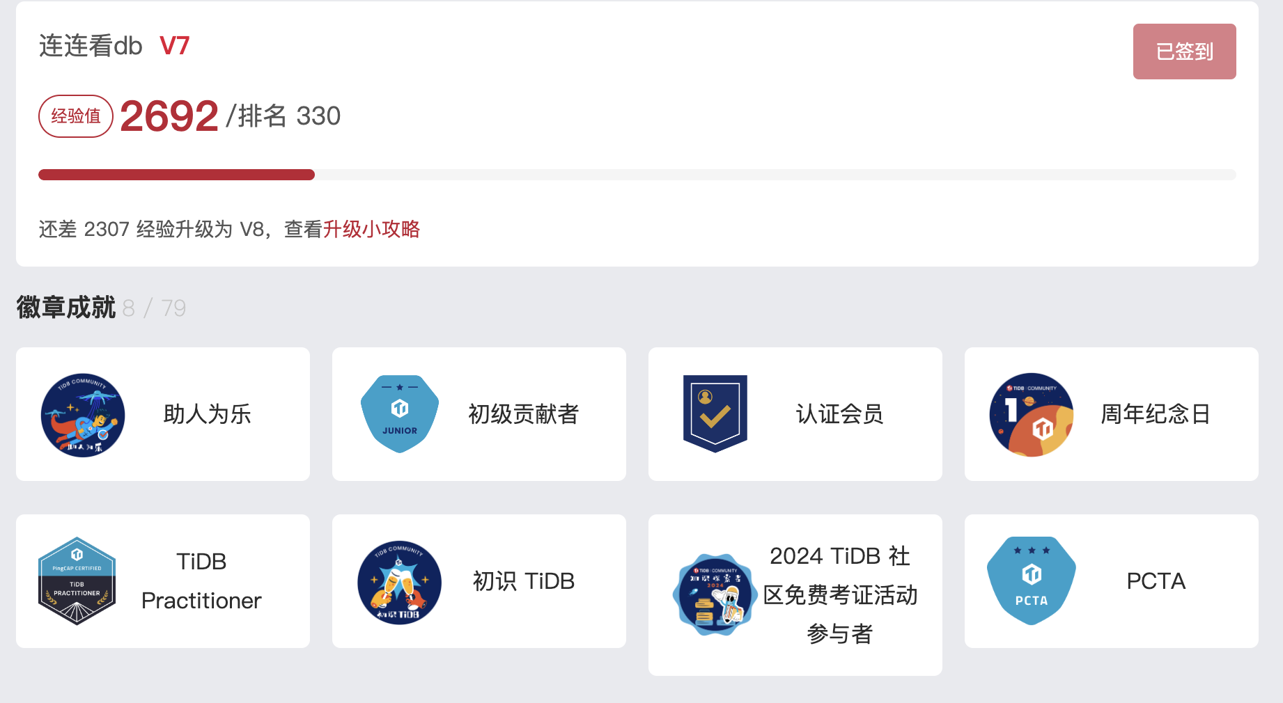参加了2024免费考证活动,通过了PCSD认证,终于集齐了TiDB所有认证。第一次参加了TiDB的线下活动并当了志愿者,收获满满。希望下半年能更多提出和回答问题,并输出技术文章。