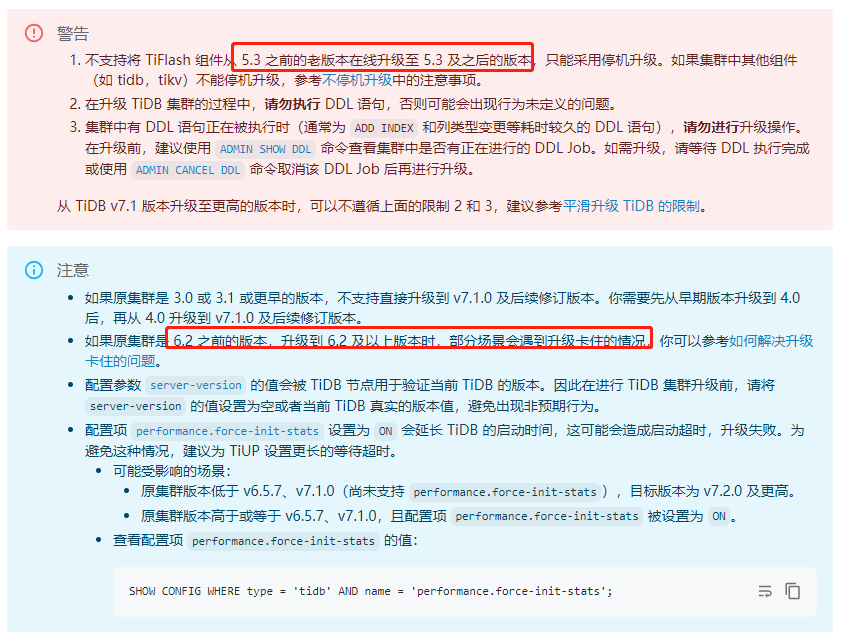 因为生产集群数据量挺大,而且都是核心业务再用,目前没有额外多余资源做一套镜像集群来升级,想通过在线直接升级的到 7.1.0版本。 求教各位需要注意的事项等