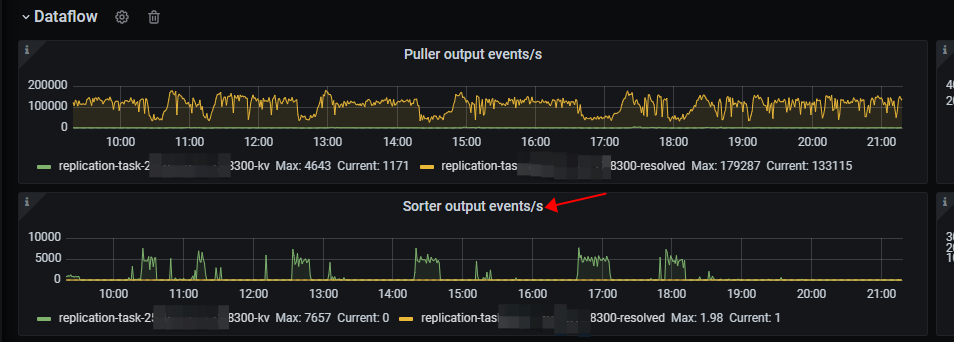 生产环境现在又2个TiCDC 节点,目前发现流量大的时候sorter 特别的慢,想要扩容看看能不能解决该问题