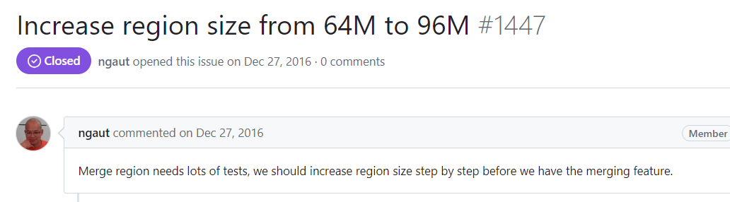 Region太大太小都不好,需要均衡考虑,其他分布式也类似,就比如MONGODB一个chunk大小是64M