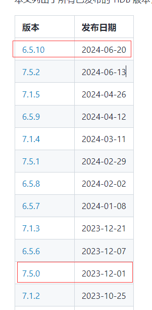 从发布时间来看 7.5.0 的版本早于 6.5.10 ,