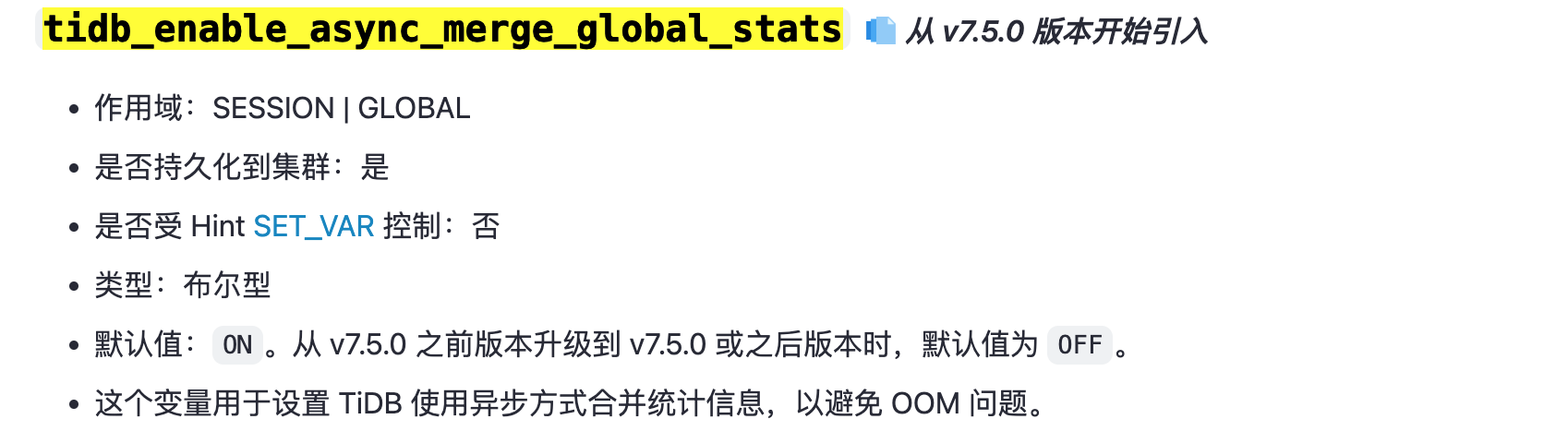 这个关闭 tidb_enable_async_merge_global_stats ,就是 7.1,6.5 默认的 merge global status 方式