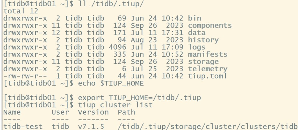 有的,我原来目录是:/home/tidb/.tiup ,我是直接mv .tiup 到/tidb目录了