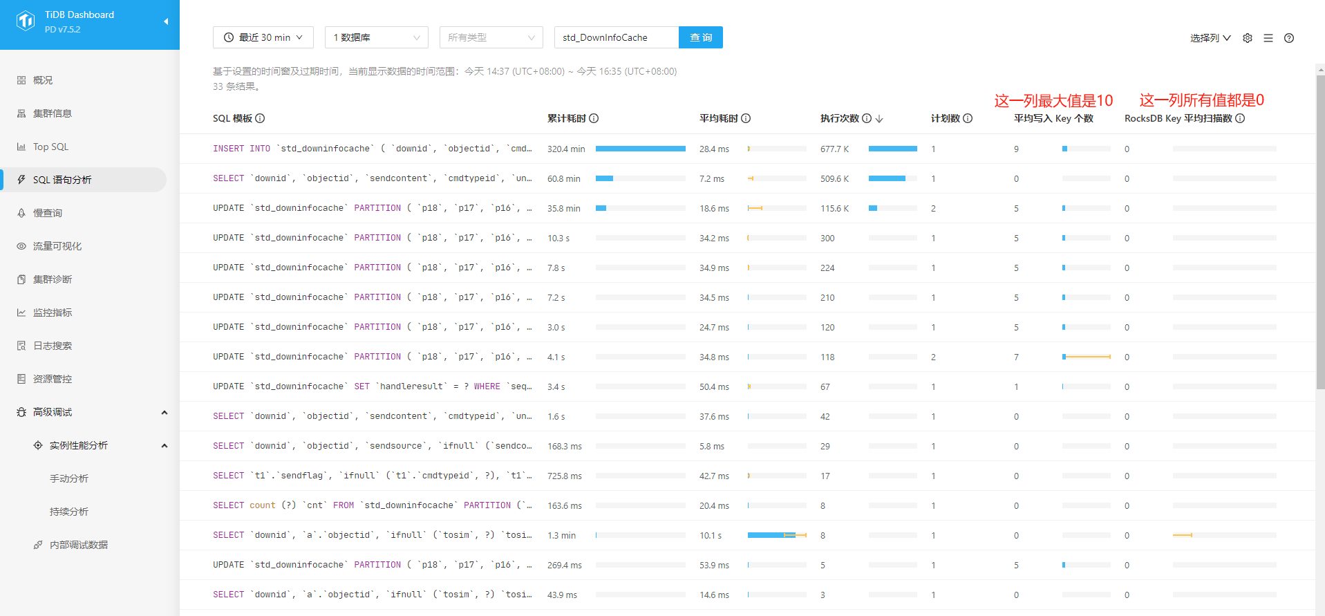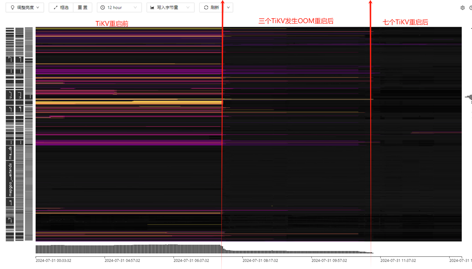 看下这个是不是有帮助 :专栏 - Dashboard 热力图显示不准? 如何定位热点相关sql ? | TiDB 社区