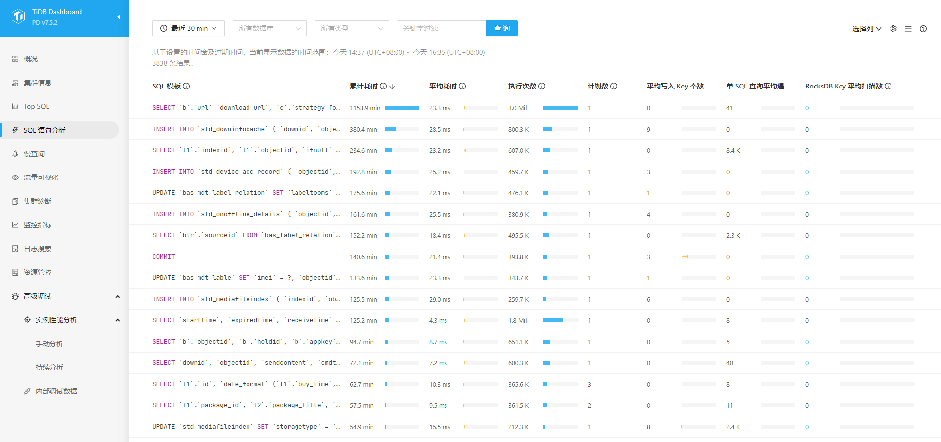 慢查询和sql语句分析都看不到 热力图上显示的那张表吗?