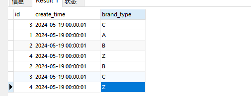 INSERT INTO `test`.`p1`(`id`, `create_time`, `brand_type`) VALUES (3, '2024-05-19 00:00:01', 'C');