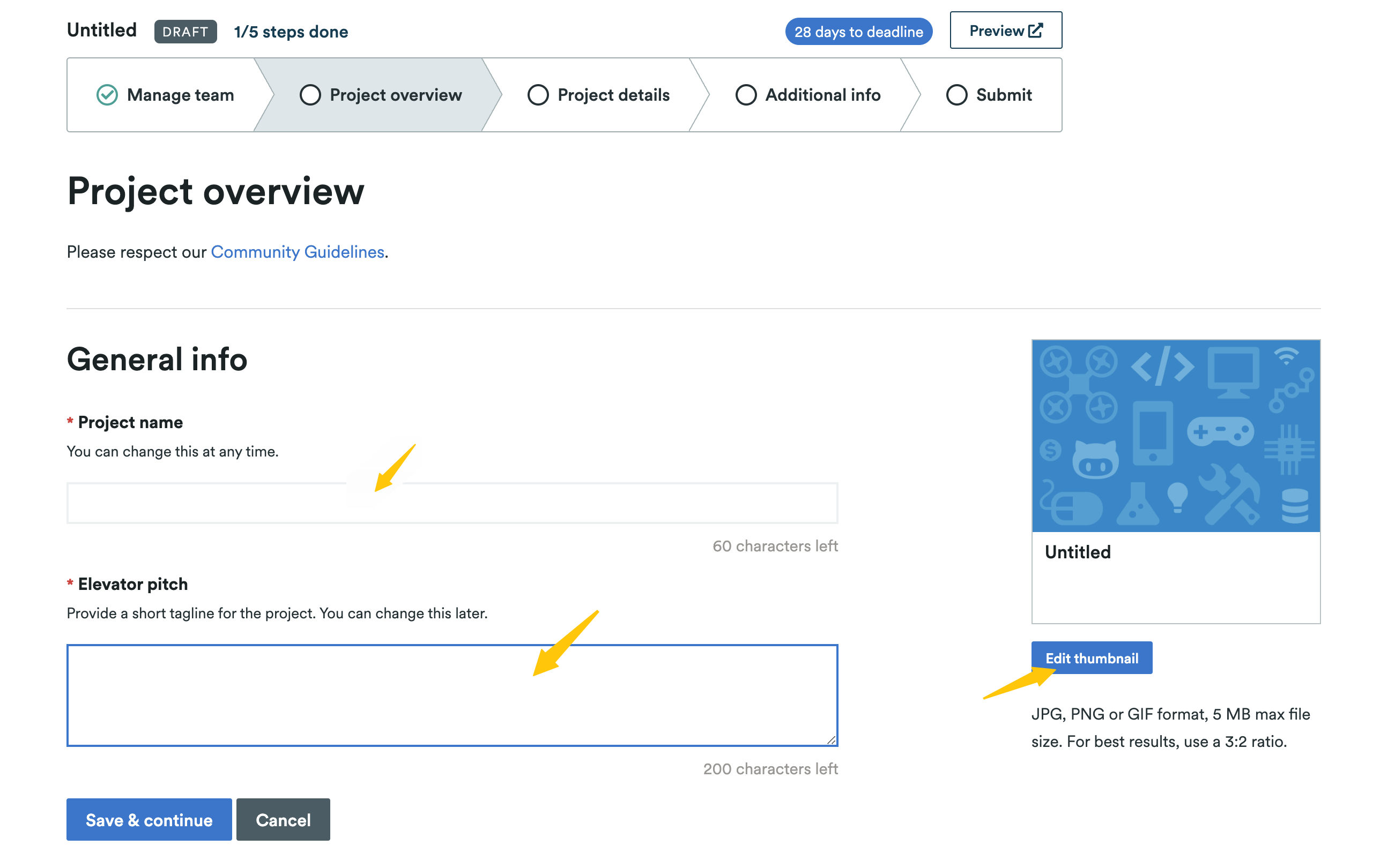项目logo(Edit thumbnail),文件格式为 JPG/PNG/GIF 格式,文件大小 5 MB 以下,图片尺寸 3:2