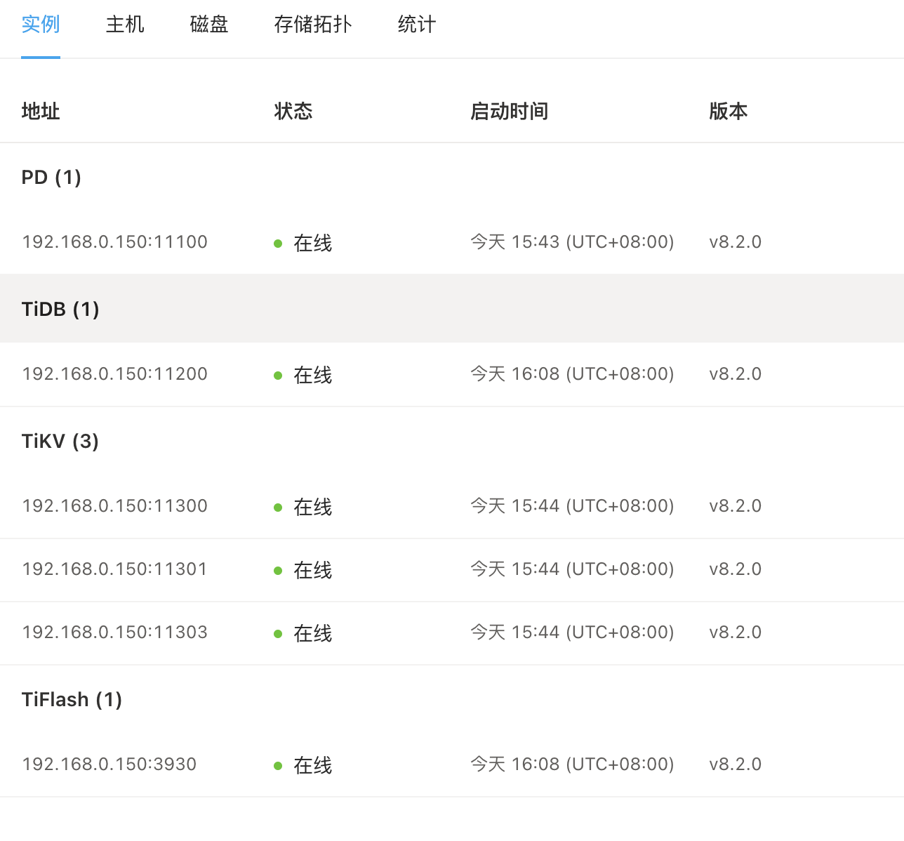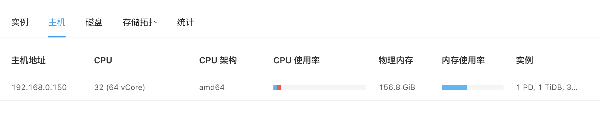 【资源配置】进入到 TiDB Dashboard -集群信息 (Cluster Info) -主机(Hosts) 截图此页面