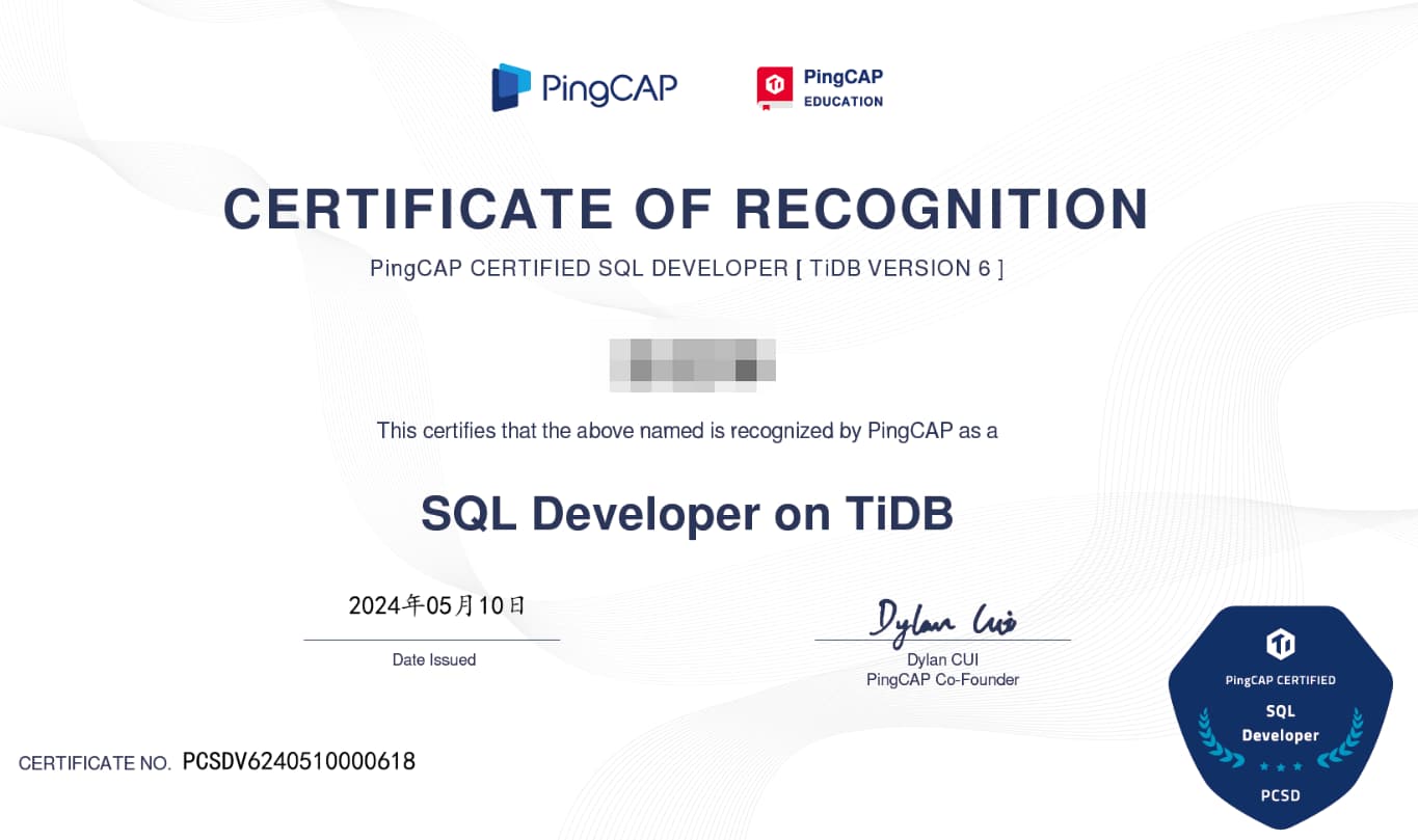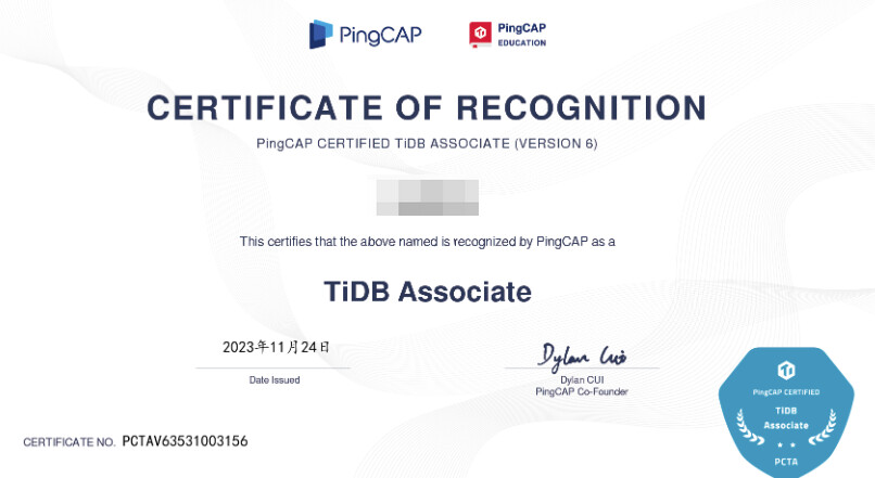 直到11月,社区有一个 TiDB 认证培训五周年的活动。只要看过课程的就可以兑换,我一下来了兴致。然后领了 PTCP 的兑换码,整理了一下视频课程中的知识点,当时为了巩固还去看了 tidb, pd 和 tikv 的部分代码,感觉挺有意思的。