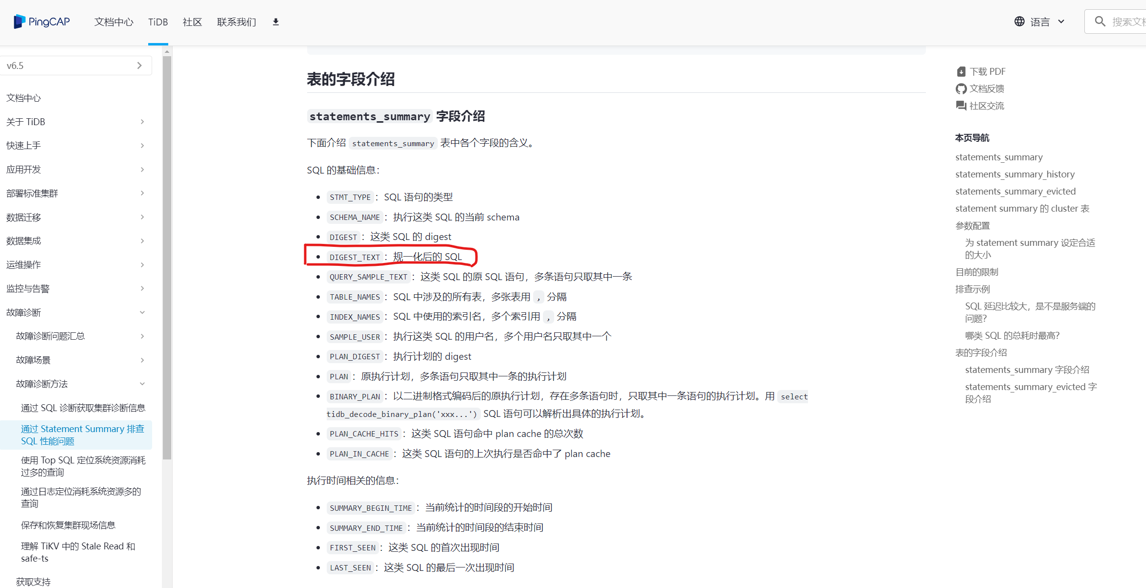 select * from information_schema.statements_summary where digest = ‘77750223e273b9668445638594f815bca555e963a810db030c61200e4b8e474b’