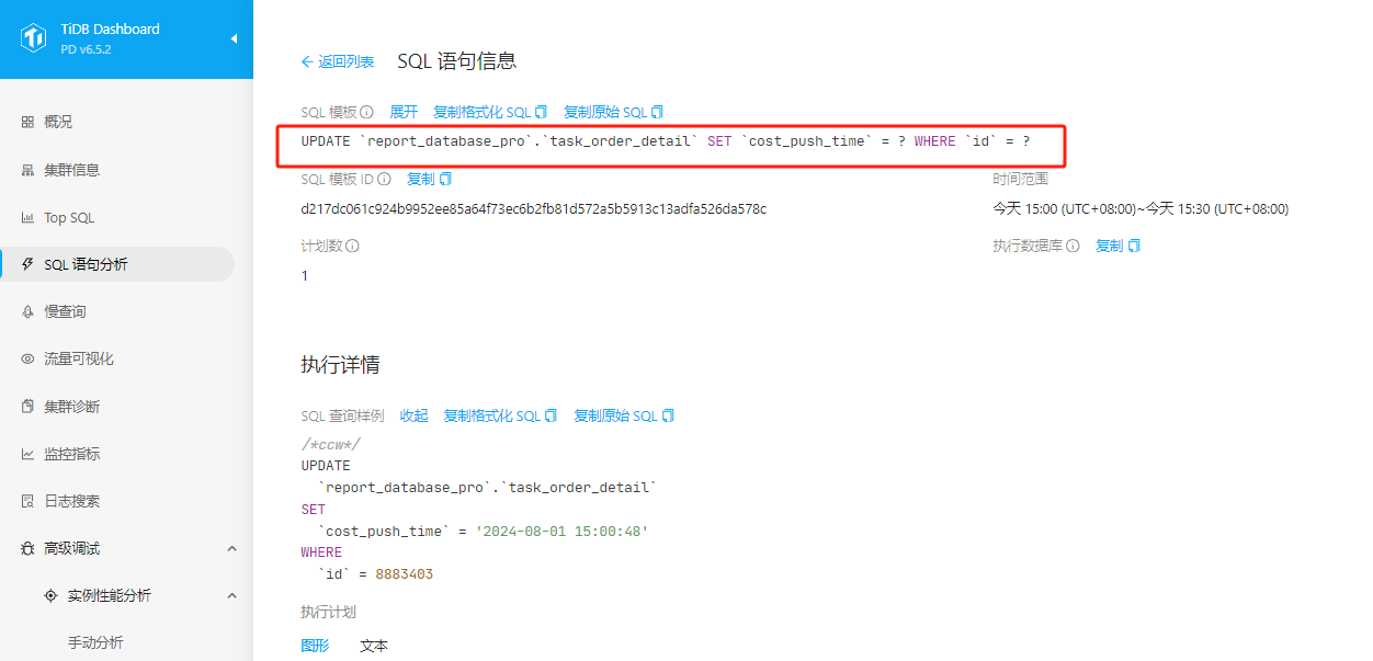 1、使用如下SQL查到SQL 的DIGEST:‘77750223e273b9668445638594f815bca555e963a810db030c61200e4b8e474b’