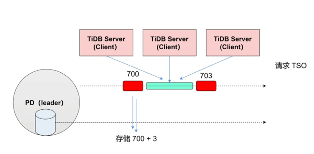 还需要注意一点的是, PD在分配TSO的时候会对TSO进行落盘,即会产生IO操作,所以在分配过程中会分配 一段时间窗口 的TSO并缓存到内存,在TiDB Server 多次获取的过程中,只需要从内存中获取TSO即可,大大增加了并发性。源码在 pd 的