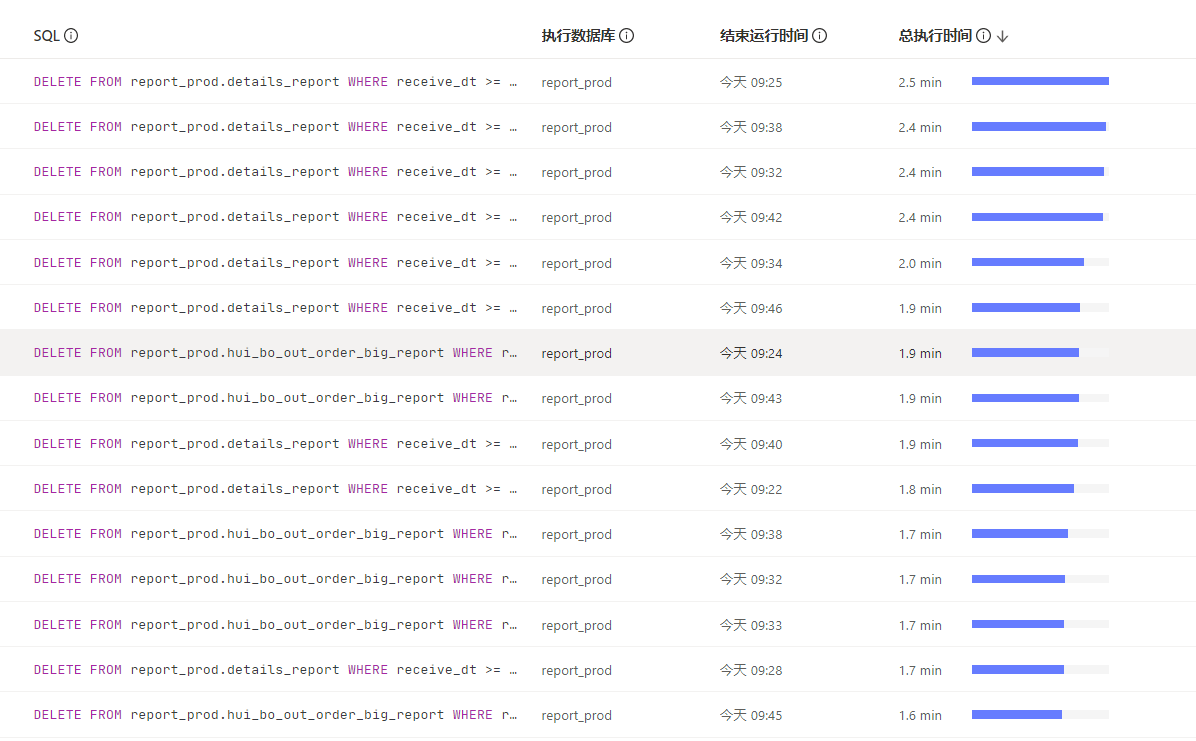 但是这个时间比较长,删除的表大小都有记录。表1T以内的基本上都是10-40s删除1w数据执行完1条sql。