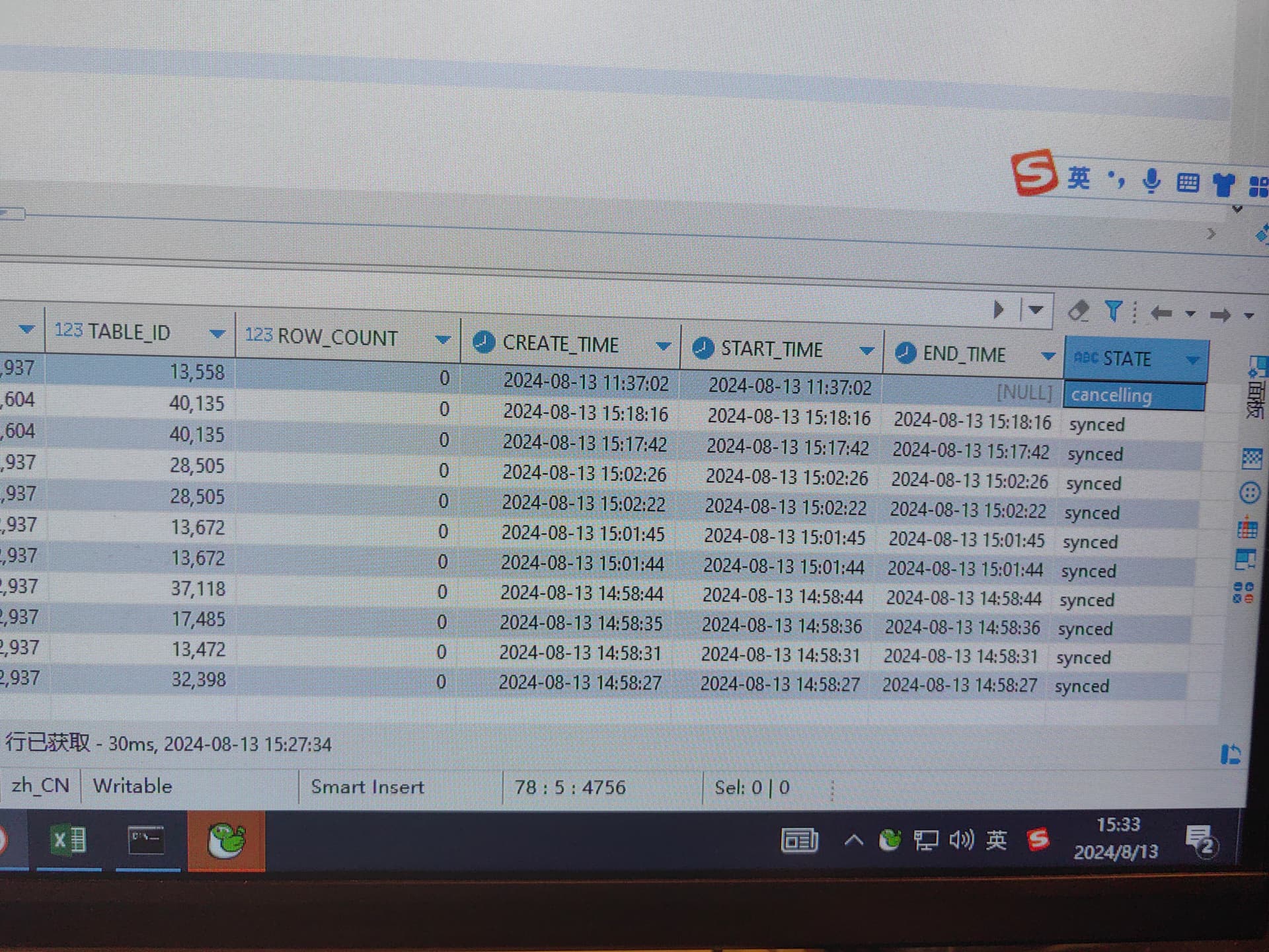 ddl状态一直是cancelling状态,怎么让他结束synced或者完成