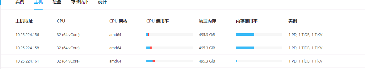 【资源配置】进入到 TiDB Dashboard -集群信息 (Cluster Info) -主机(Hosts) 截图此页面