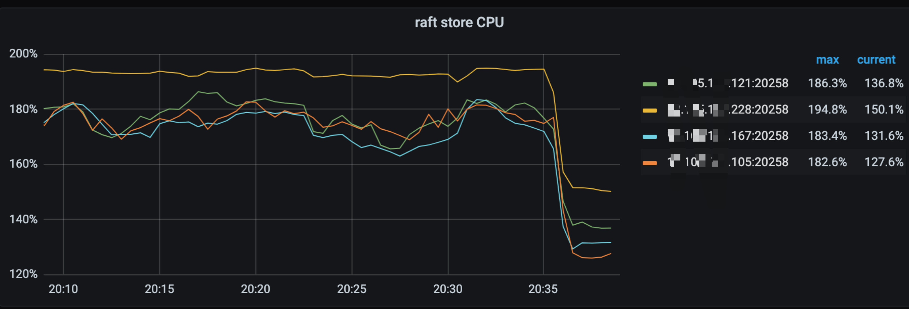 从tikv-details 的grpc 监控中可以看到有大量的ttl qps, 将ttl 的运行时间调整成半夜时间范围后,raft cpu 使用率明显下降