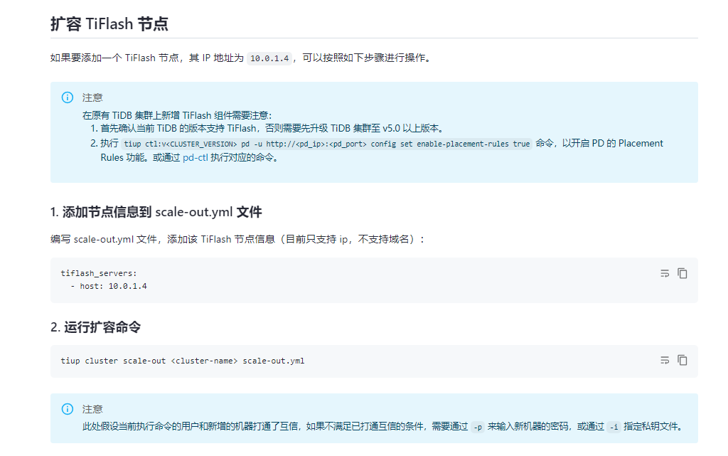 按官方手册扩容就行,tiflash非常吃资源,建议单独服务器部署这个组件。