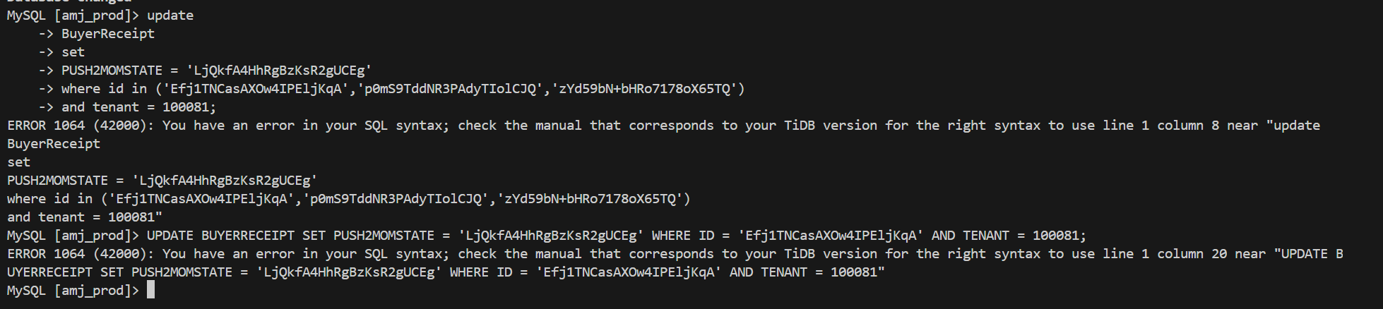 刚跑过了,把这个sql重新手敲一遍就过了。原sql是我从开发那复制过来的,可能是有什么特殊字符