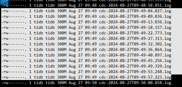 【遇到的问题:问题现象及影响】但在log路径下一直产生日志文件,日志内容就是[2024/08/21 09:48:31.344 +08:00] [WARN] [sink.go:488] [“meet nil column data, should not happened in production env”] [cols=“[{"column_id":1,"value":2594073387516685639},{"column_id":2,"value":"NDIzZThmMTE5YjU5YzI3MmJkMWNjN2JlZDUxZmYwOGE="},{"column_id":3,"value":"MTMxNTM1NDky"},{"column_id":4,"value":"MjAyMw=="},{"column_id":5,"value":"NDQwMzA2MTE3MDE2NzIz"},{"column_id":6,"value":"OTE0NDAzMDBNQTVESEs2UjQ3"},null,{"column_id":8,"value":"5rex5Zyz5biC5aSn5qKB5Zu95Yib56eR5oqA5pyJ6ZmQ5YWs5Y+4"},{"column_id":9,"value":"MjAyM+W5tOW6puaKpeWRig=="},{"column_id":10,"value":"MjAyNC0wOC0xMg=="},{"column_id":11,"value":null},{"column_id":12,"value":null},{"column_id":13,"value":null},{"column_id":14,"value":"MTM1MTA0OTIzMjE="},{"column_id":15,"value":"MTA0NjQ5NDIwNEBxcS5jb20="},{"column_id":16,"value":null},{"column_id":17,"value":null},{"column_id":18,"value":null},{"column_id":19,"value":null},{"column_id":20,"value":null},{"column_id":21,"value":"5rex5Zyz5biC5a6d5a6J5Yy65rKZ5LqV6KGX6YGT5aOG5bKX5Y2O576O5bGFM+agizIwMDg="},{"column_id":22,"value":"55S15a2Q5Lqn5ZOB5Y+K5ZGo6L656YWN5Lu255qE5oqA5pyv5byA5Y+R5LiO6ZSA5ZSu77yb55S16ISR5ZGo6L656YWN5Lu244CB5omL5py66YWN5Lu244CB56e75Yqo55S15rqQ44CB6Z+z5ZON44CB55S15a2Q5raI6LS55ZOB5Y+K55S15a2Q56S85ZOB55qE6ZSA5ZSu77yb5Zu95YaF6LS45piT77yM6LSn54mp5Y+K5oqA5pyv6L+b5Ye65Y+j44CCKOazleW+i+OAgeihjOaUv+azleinhOOAgeWbveWKoemZouWGs+WumuinhOWumuWcqOeZu+iusOWJjemhu+e7j+aJueWHhueahOmhueebrumZpOWklu+8iQ=="},null,{"column_id":24,"value":"NTE4MDAw"},{"column_id":25,"value":null},null,null,{"column_id":28,"value":null},{"column_id":29,"value":"5ZCm"},{"column_id":30,"value":"5ZCm"},{"column_id":31,"value":"5ZCm"},{"column_id":32,"value":"5piv"},null,{"column_id":34,"value":"5byA5Lia"},null,null,{"column_id":37,"value":null},{"column_id":38,"value":null},null,null,{"column_id":41,"value":null},{"column_id":42,"value":null},{"column_id":43,"value":null},null,{"column_id":45,"value":null},{"column_id":46,"value":null},null,null,null,null,null,{"column_id":52,"value":null},{"column_id":53,"value":null},null,null,null,null,null,null,{"column_id":60,"value":"2024-08-21 09:37:31"},{"column_id":61,"value":"2024-08-21 09:37:31"},{"column_id":62,"value":null},null]”] [tableInfo=“TableInfo, ID: 3643, Name:xmcicdata.t_biz_ent_report, ColNum: 63, IdxNum: 5, PKIsHandle: true”]