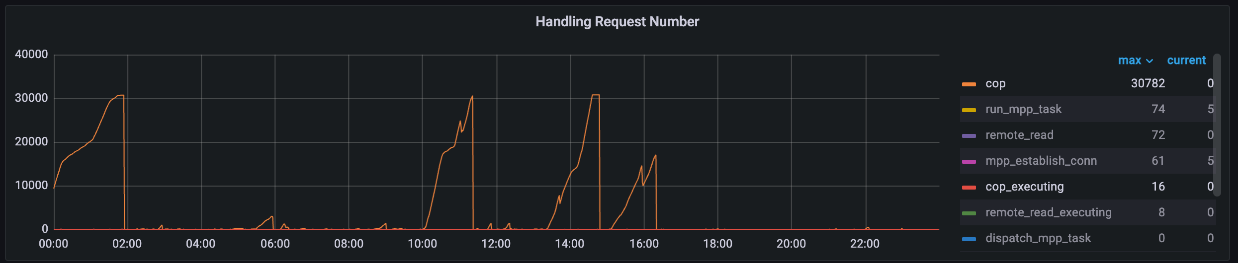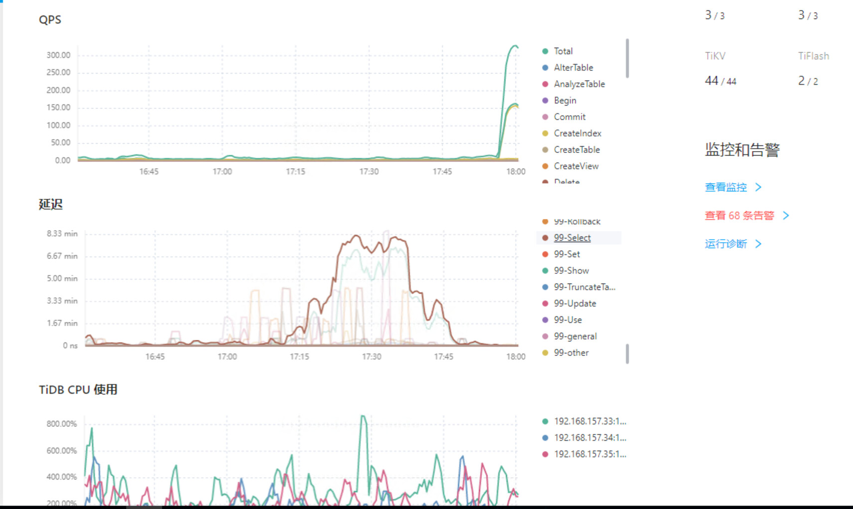 有半个小时左右的时间,涉及tiflash的查询都变的很慢,似乎hang住了,看主机负载又没有很高,后来又自动恢复正常。
