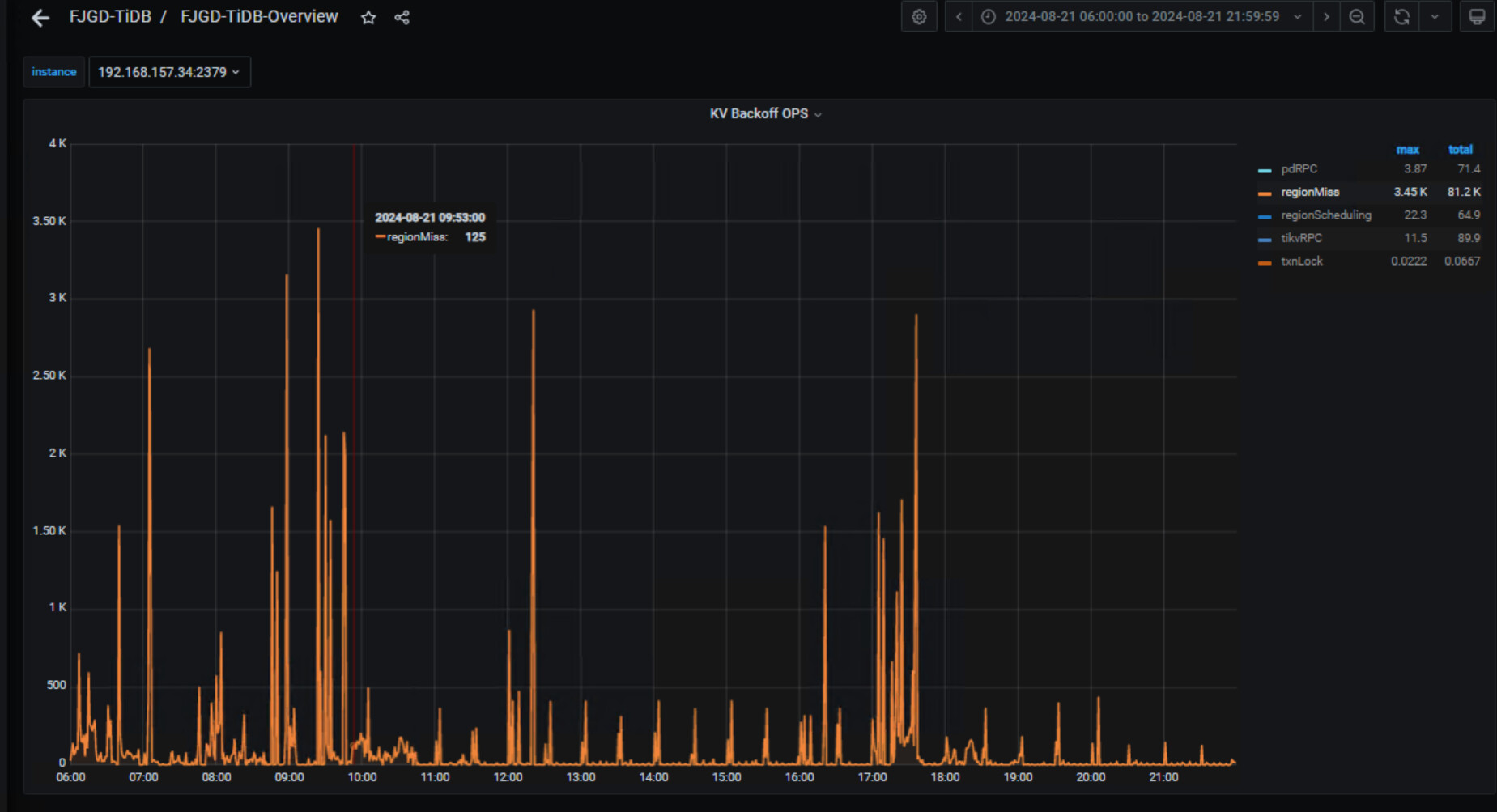 有的,regionMiss是一直都是比极高,tikvRPC当时很高,其它日期最高不超过1,这个主要表示什么问题?