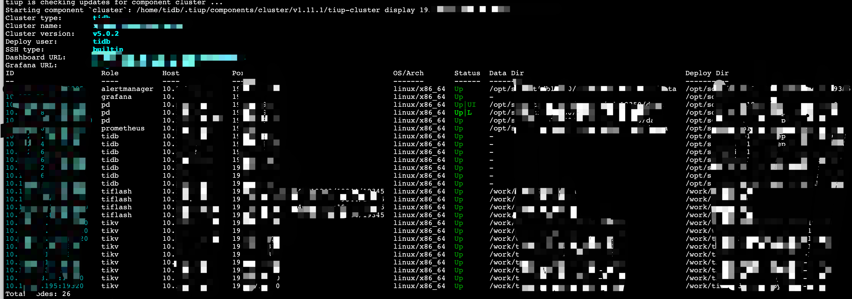 tiup display看看集群状态还正常吗?