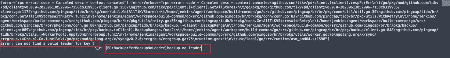 [2024/09/03 22:51:12.235 +08:00] [ERROR] [endpoint.rs:266] [“backup failed to send response”] [err_code=KV:Unknown] [err=“TrySendError { kind: Disconnected }”] [end_key=748000000000000B355F72038000000000700E5503800000000000000303800000000000019B] [start_key=748000000000000B355F720380000000006D558B03800000000000000103800000000000015D] [region=“id: 10311979 start_key: 748000000000000BFF355F720380000000FF006D558B03800000FF0000000001038000FF00000000015D0000FD end_key: 748000000000000BFF355F720380000000FF00700E5503800000FF0000000003038000FF00000000019B0000FD region_epoch { conf_ver: 44189 version: 1250 } peers { id: 11856914 store_id: 5 } peers { id: 11872624 store_id: 2 } peers { id: 11897824 store_id: 6 }”]