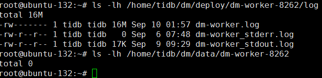 查看DM-worker的情况,数据目录是空的,错误日志也没有内容