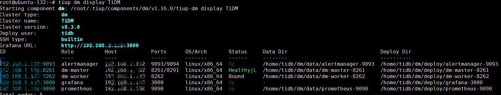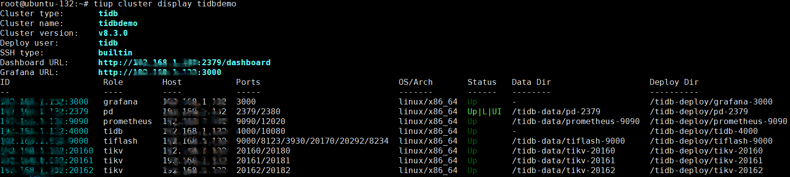 tidbdemo tidb v8.3.0 /root/.tiup/storage/cluster/clusters/tidbdemo /root/.tiup/storage/cluster/clusters/tidbdemo/ssh/id_rsa