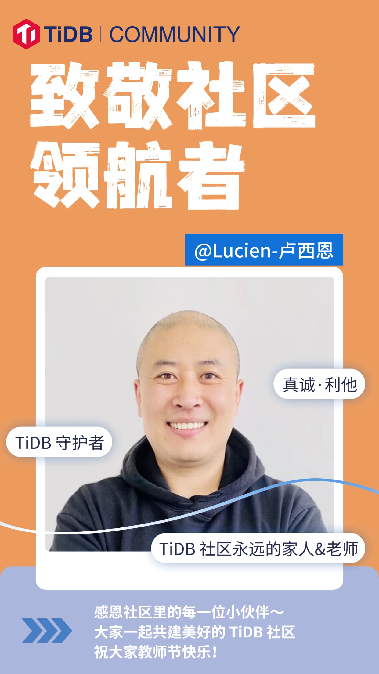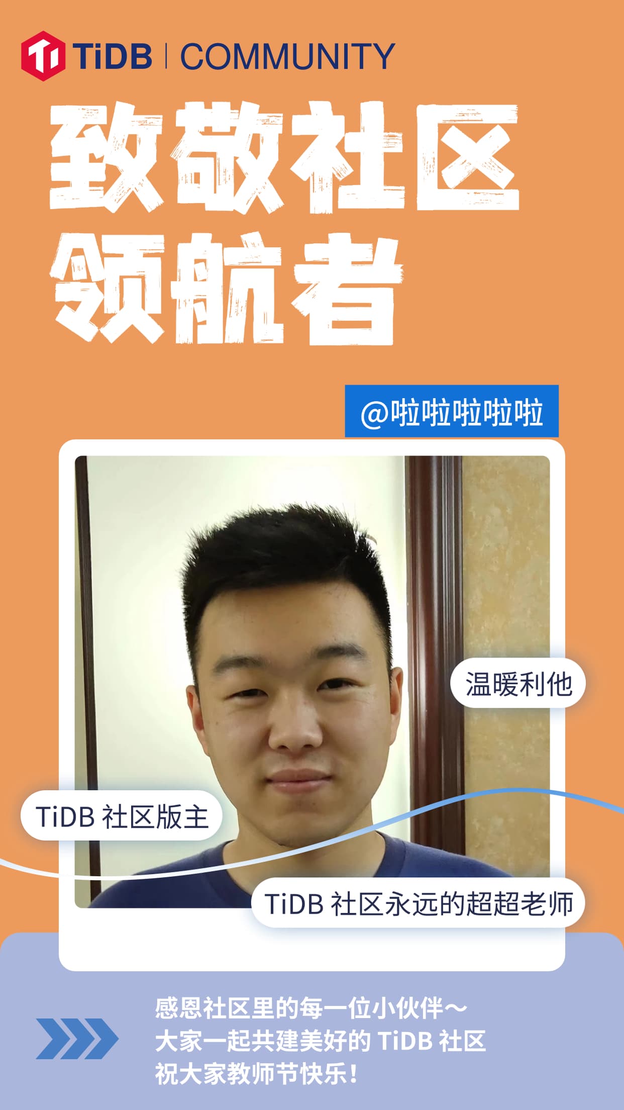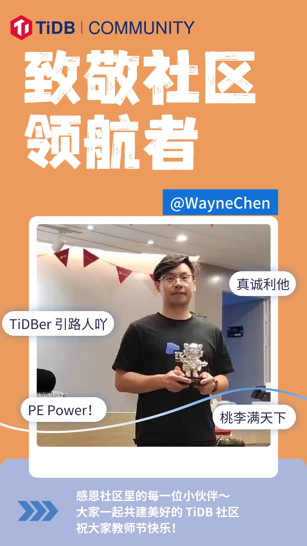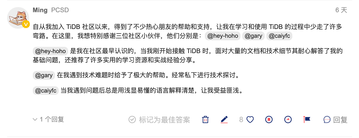 你们的带领和帮助是 TiDB 社区里最弥足珍贵的存在,TiDB 社区向 TiDBer 致以最美好的敬意~