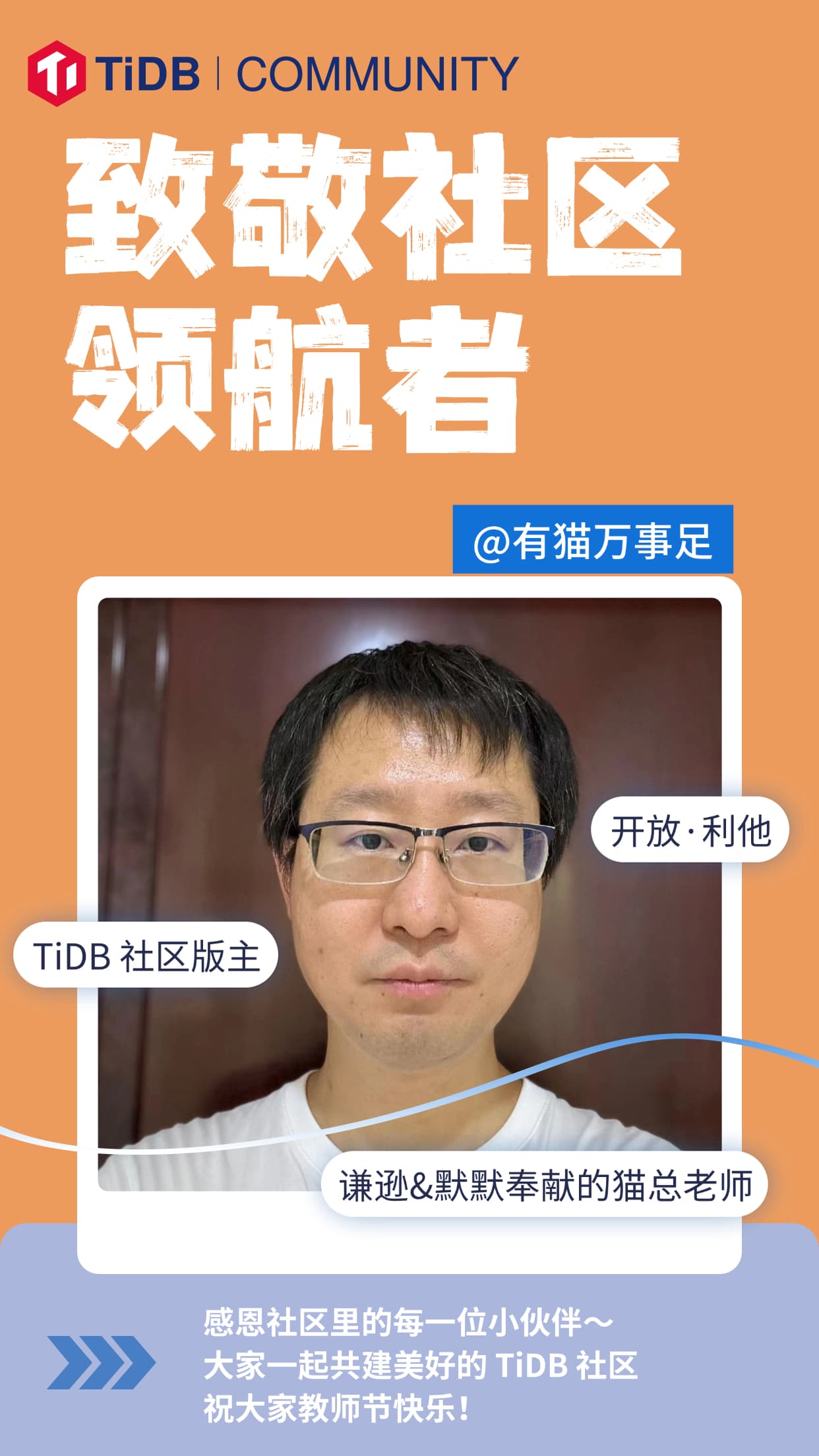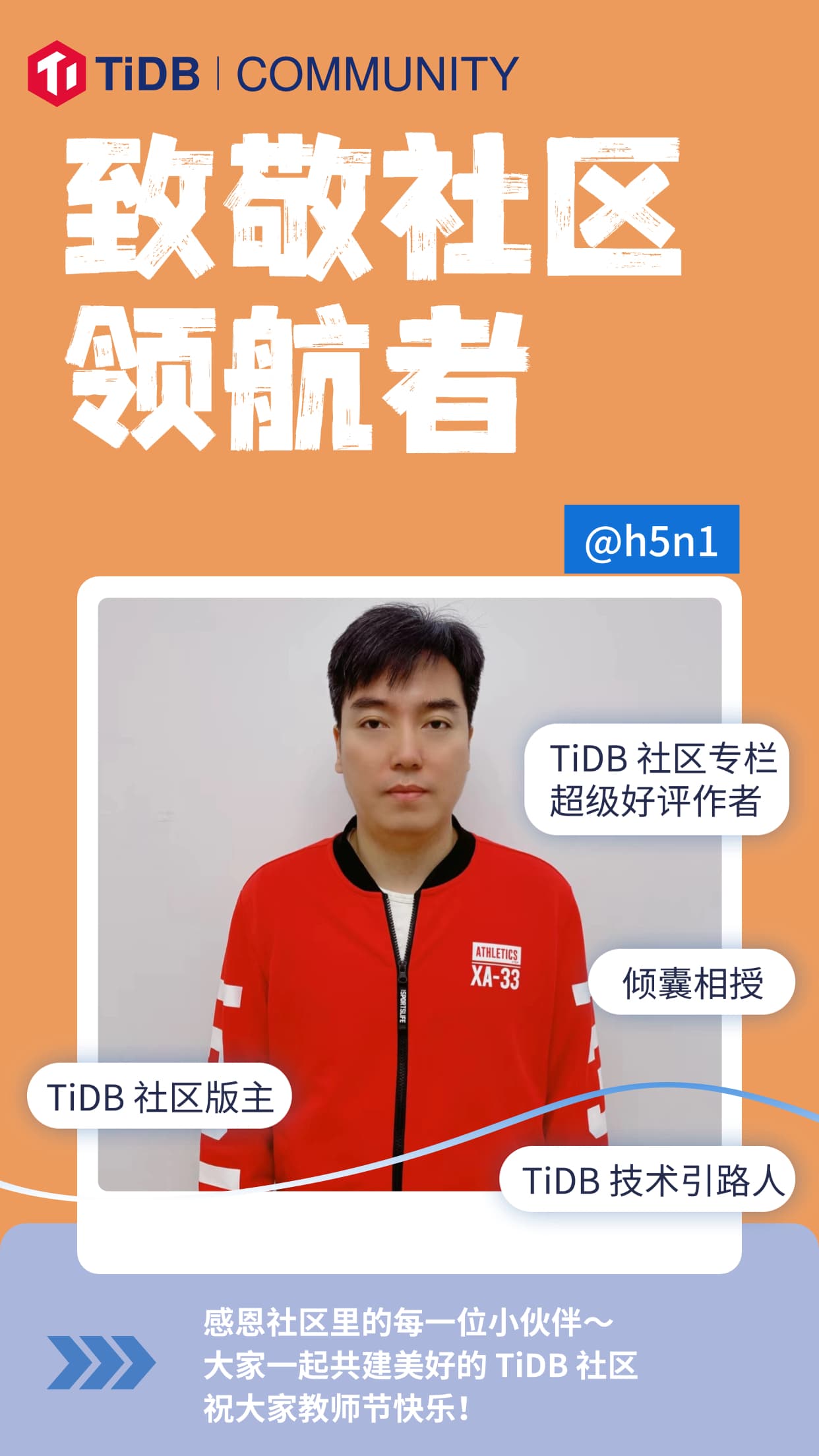 少安老师有话说:祝 TiDB 社区各位老师教师节快乐,和 TiDBer 们在社区里共同成长!