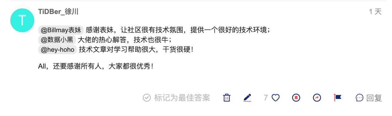 董老师有话说:因 TiDB 而结识,为 TiDB 而分享,盼 TiDB 之繁荣!感谢充满活力与尊重技术的 TiDB 社区平台!