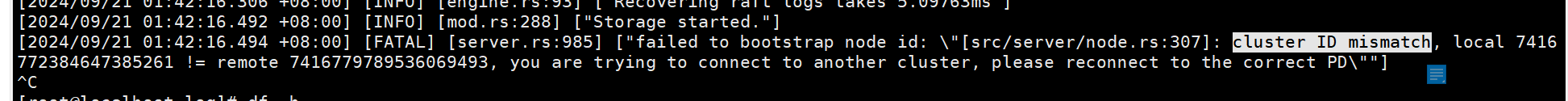 [2024/09/21 18:14:57.663 +08:00] [FATAL] [server.rs:1155] ["failed to start node: Engine(Other(\"[components/raftstore/src/store/fsm/store.rs:1211]: \\\"[components/raftstore/src/store/entry_storage.rs:650]: [region 18] 19 validate state fail: Other(\\\\\\\"[components/raftstore/src/store/entry_storage.rs:465]: log at recorded commit index [14] 3304304 doesn't exist, may lose data, region 18, raft state hard_state { term: 14 vote: 19 commit: 3304074 } last_index: 3304075, apply state applied_index: 3304304 commit_index: 3304304 commit_term: 14 truncated_state { index: 3304302 term: 14 }\\\\\\\")\\\"\"))"]