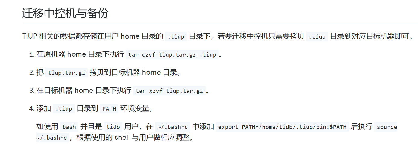 可以把 ~/.tiup 目录拷贝到其他节点上实现高可用,还要把tidb软件包也放到相同目录下