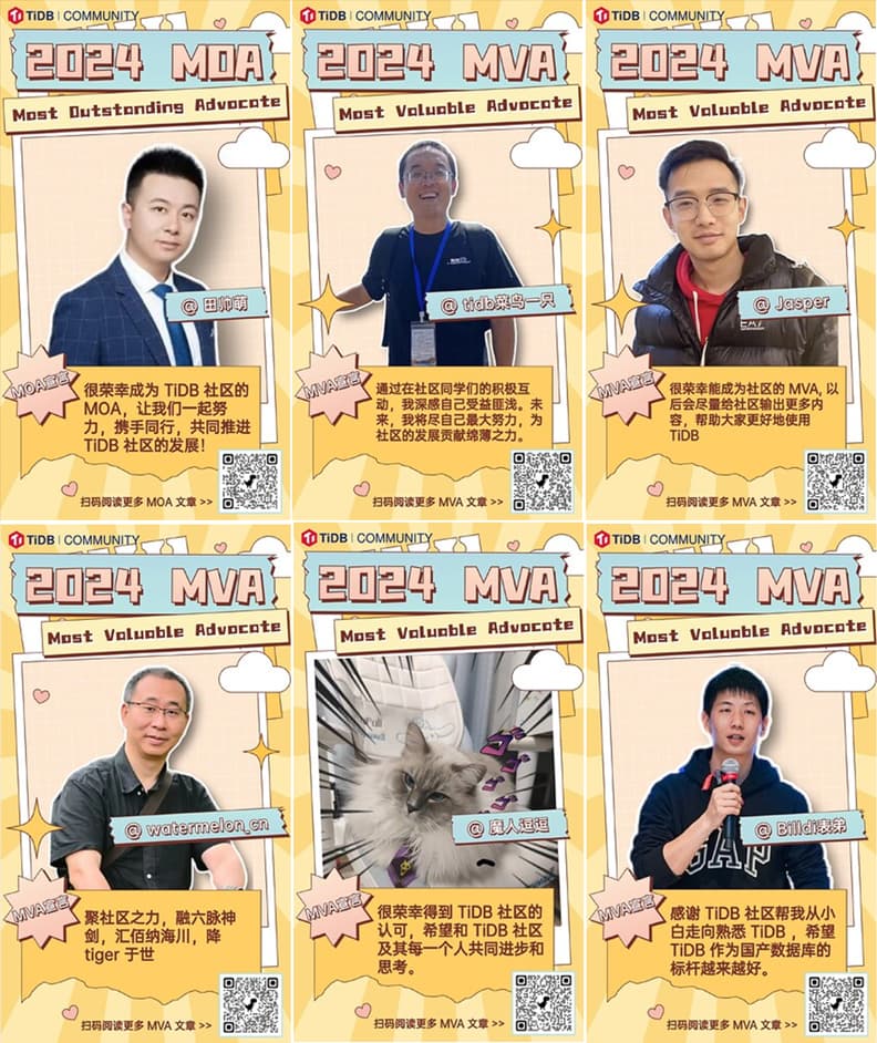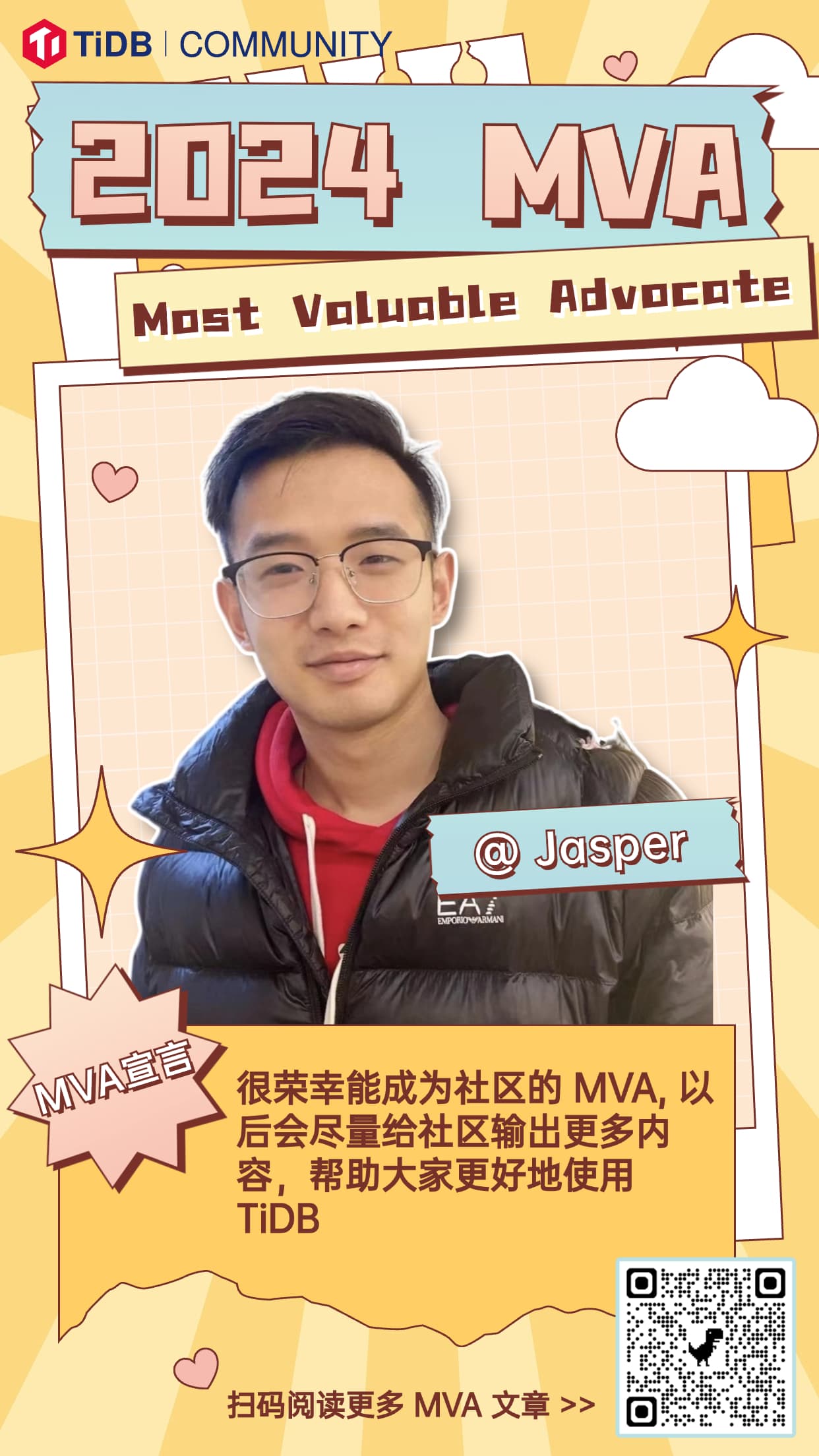 很荣幸成为 TiDB 社区的 MVA。TiDB 社区以其开放、包容和充满活力的特点,在国内分布式数据库开源社区中独树一帜。通过在社区和同学们的积极互动,我深感自己受益匪浅。未来,我将尽自己最大努力,为社区的发展贡献绵薄之力。