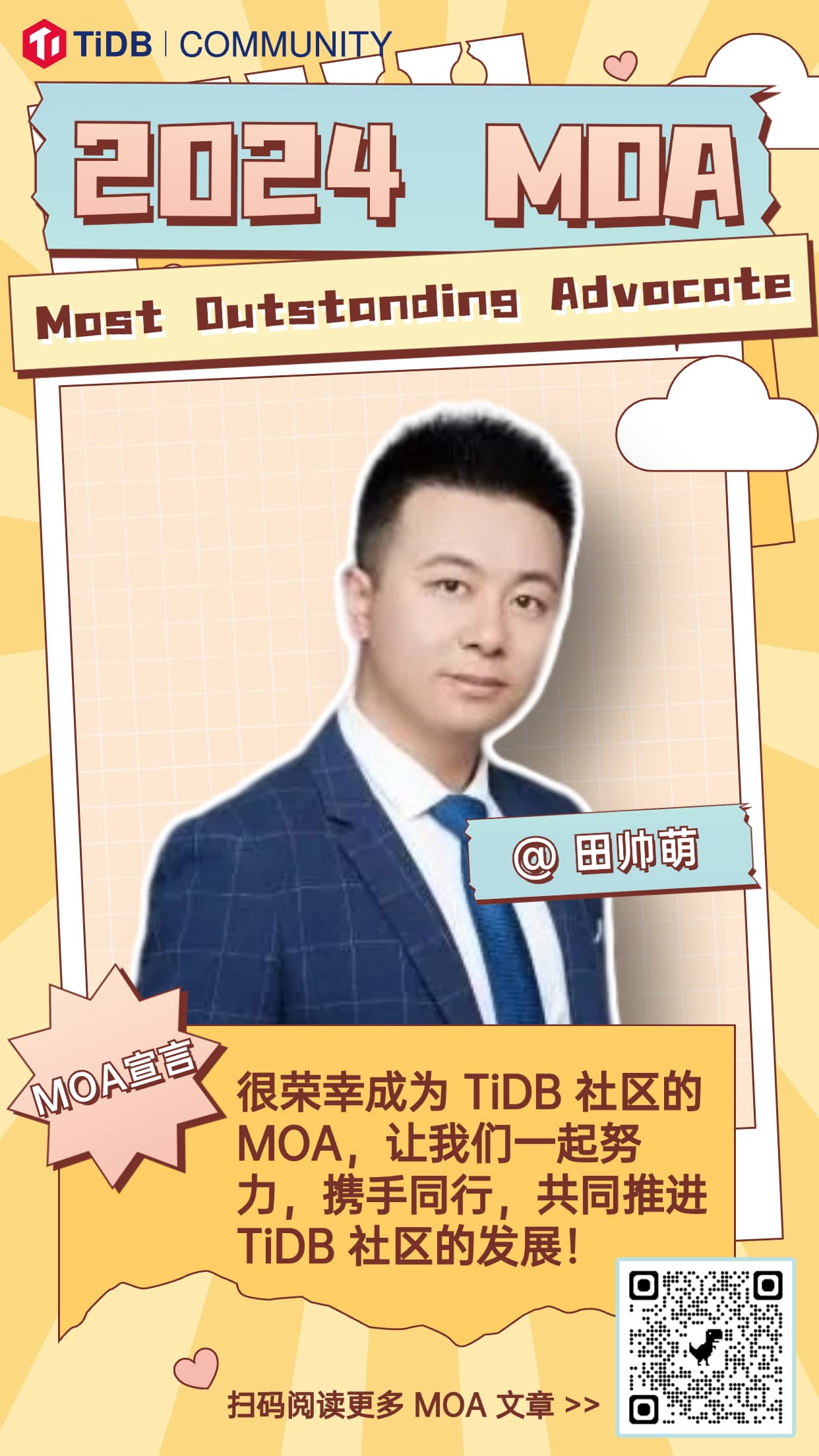 很荣幸成为 TiDB 社区的 MOA,让我们一起努力,携手同行,共同推进 TiDB 社区的发展!