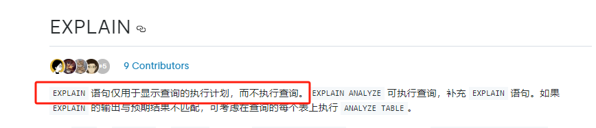 一般认知里explain是不影响数据库的,如果有一个SQL子查询性能非常差,explain可能会影响系统,文档里明确说明explain不会执行查询,这里我觉得描述不对,不太严谨。