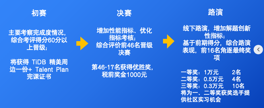 初赛: 将获得 TiDB 精美周边一份 + Talent Plan 完课证书。