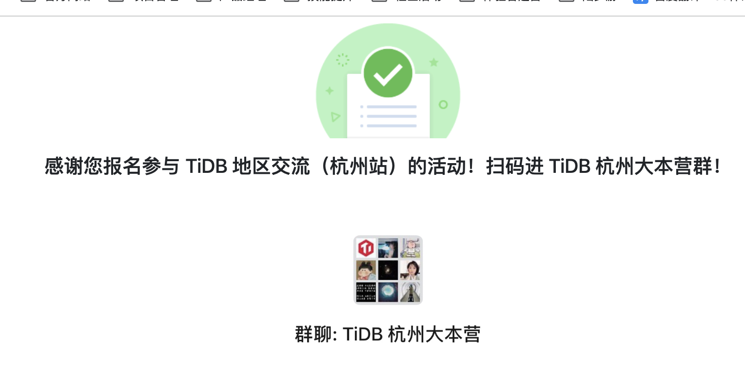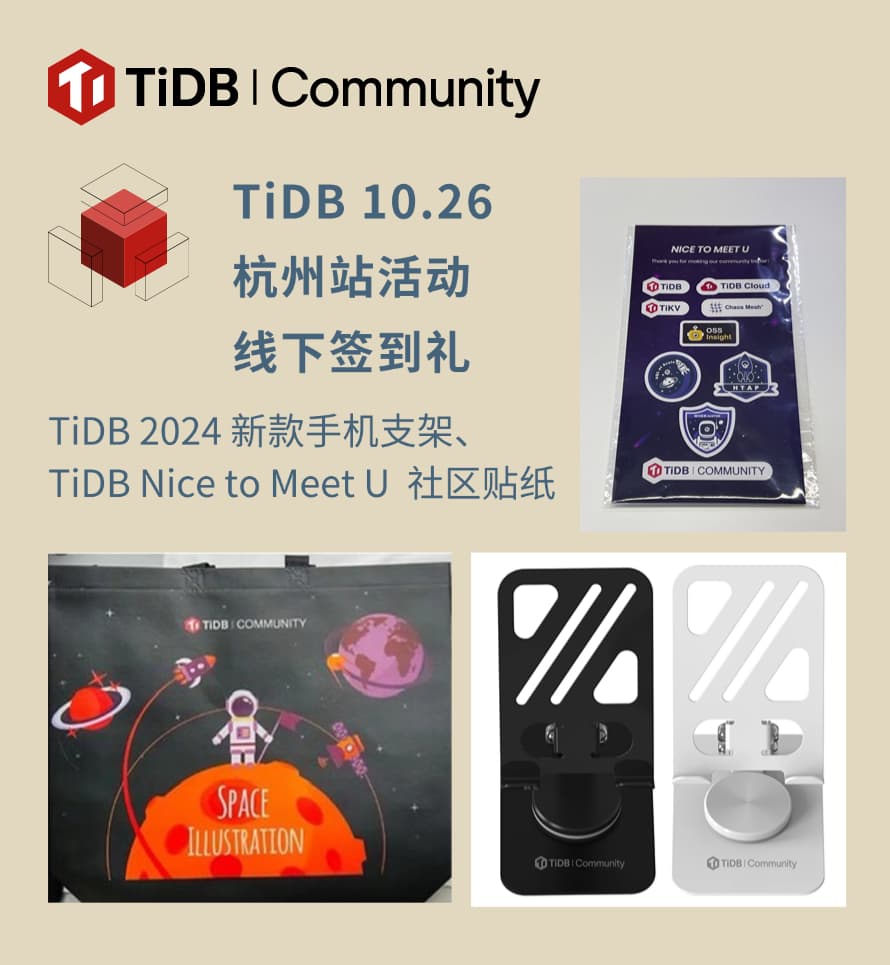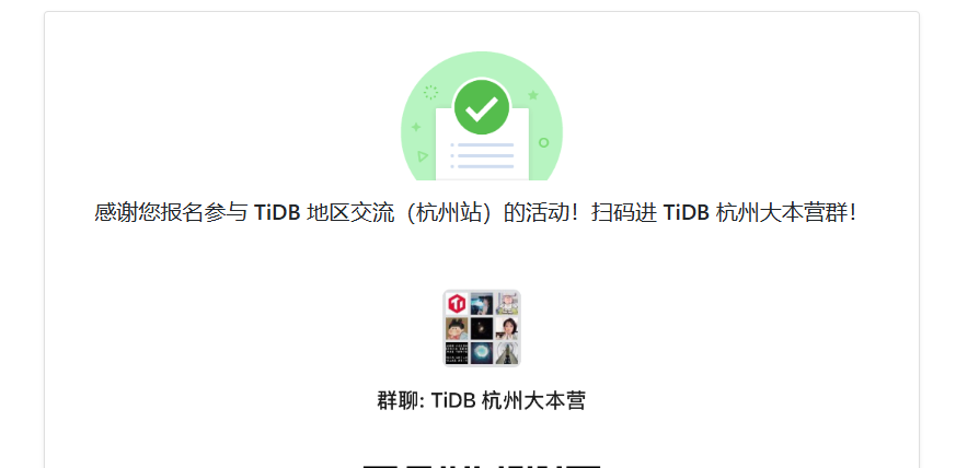报名活动 & 加入活动微信群 >> 10 月 26 号 TiDB 地区交流活动(杭州站)报名表 - PingCAP Community Form ,报名即可获得 50 积分&经验值奖励!