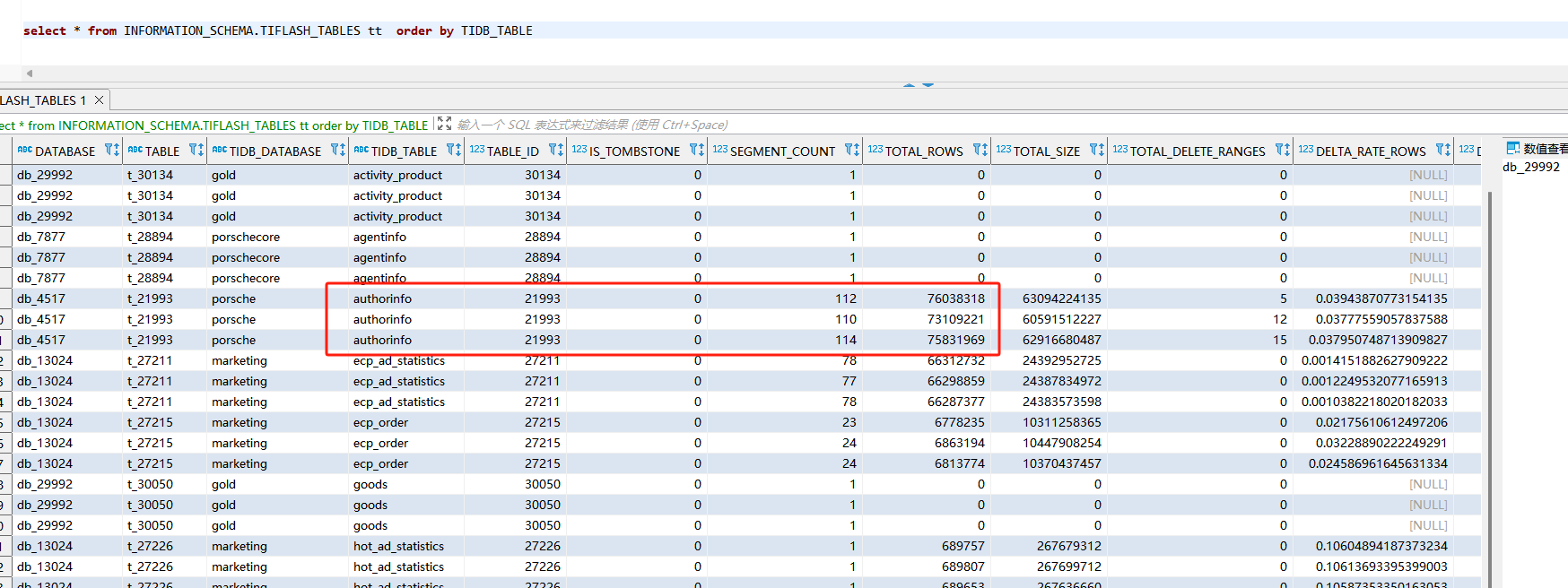 TIFLASH_TABLES 表提供了 TiFlash 内部数据表的统计信息,是统计信息,不是真实的表的行数